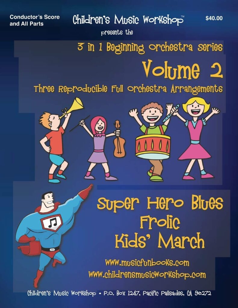 3 in 1 Beginning Orchestra Arrangements Volume 2 is a value-packed collection of three beginner-friendly orchestra pieces for first-year players. With Super Hero Blues, Frolic, and Kids’ March, this book gives young students accessible, exciting music that builds core ensemble skills while keeping rehearsals fun.