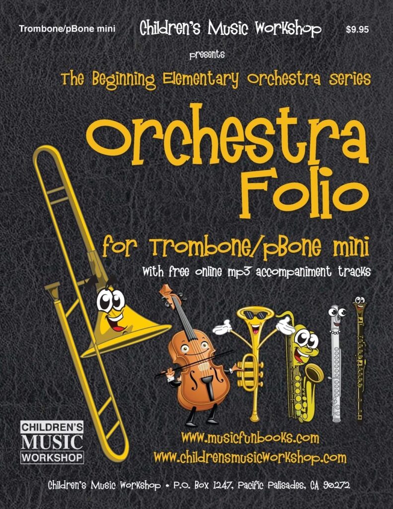 Orchestra Folio for Trombone/pBone mini is a collection of elementary-level orchestra arrangements designed specifically for young trombone and pBone players. The pieces are arranged to work in full orchestra settings with strings and winds, while still being flexible enough for smaller groups such as strings only, winds only, or mixed beginner ensembles. The included free online mp3 accompaniment tracks help students practice confidently at home or in class. See all 12 of our books in this series on amazon.